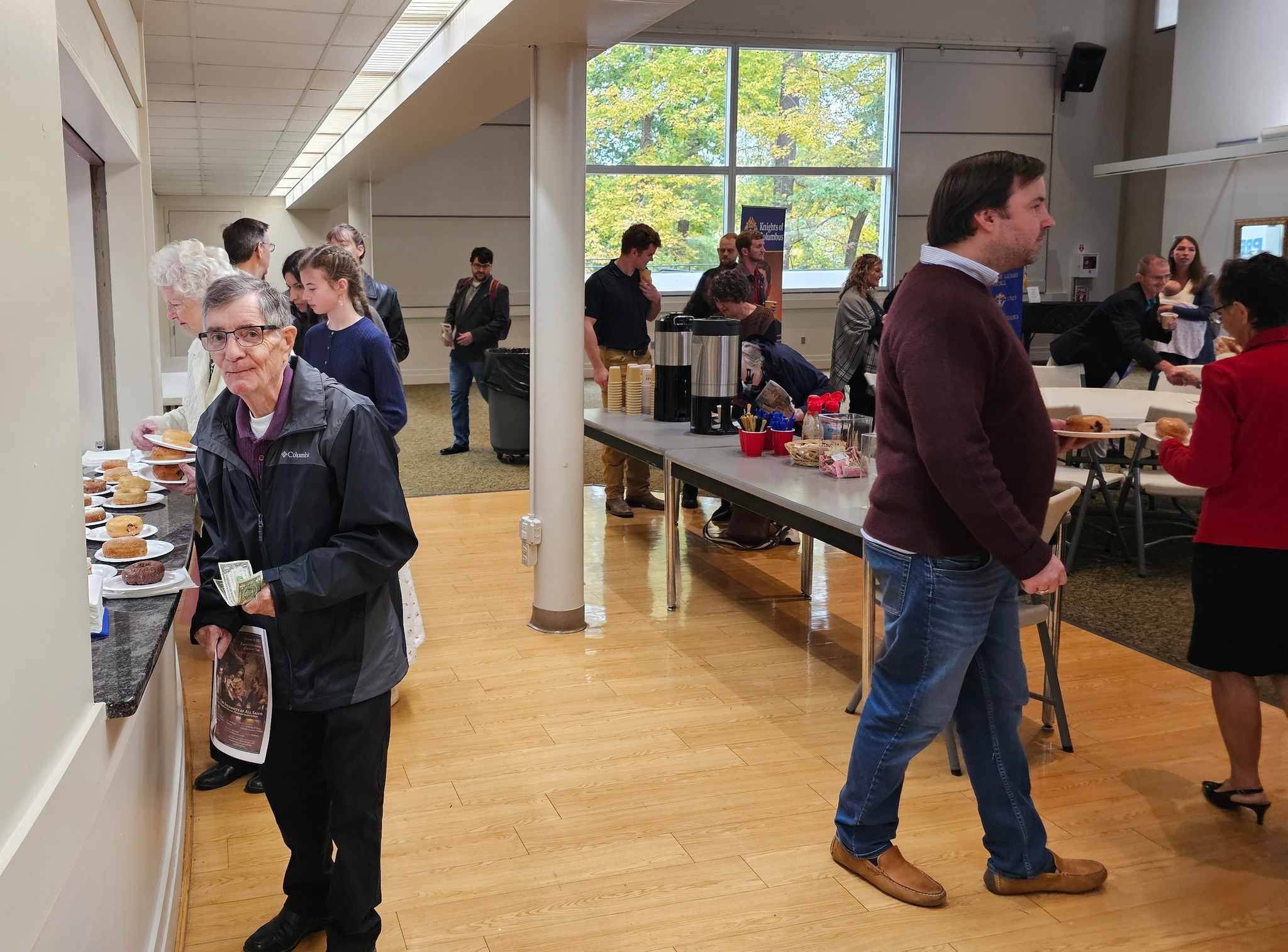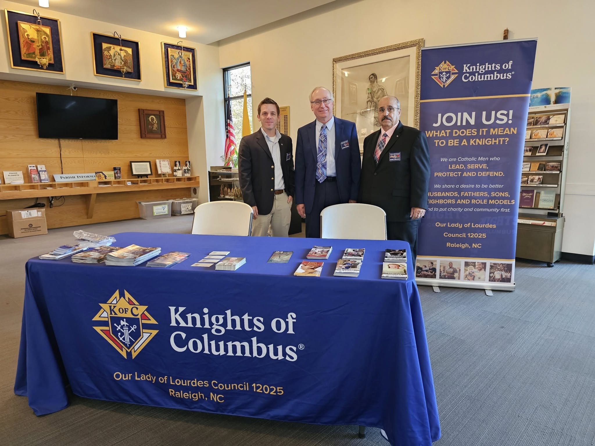 Busy weekend! Membership Drive AND coffee and doughnuts while still helping with the CPO Food Drive AND Mass. Great job everyone! Several men expressed interest in joining the Knights. Serving God with your Brothers is a spiritually refreshing journey.