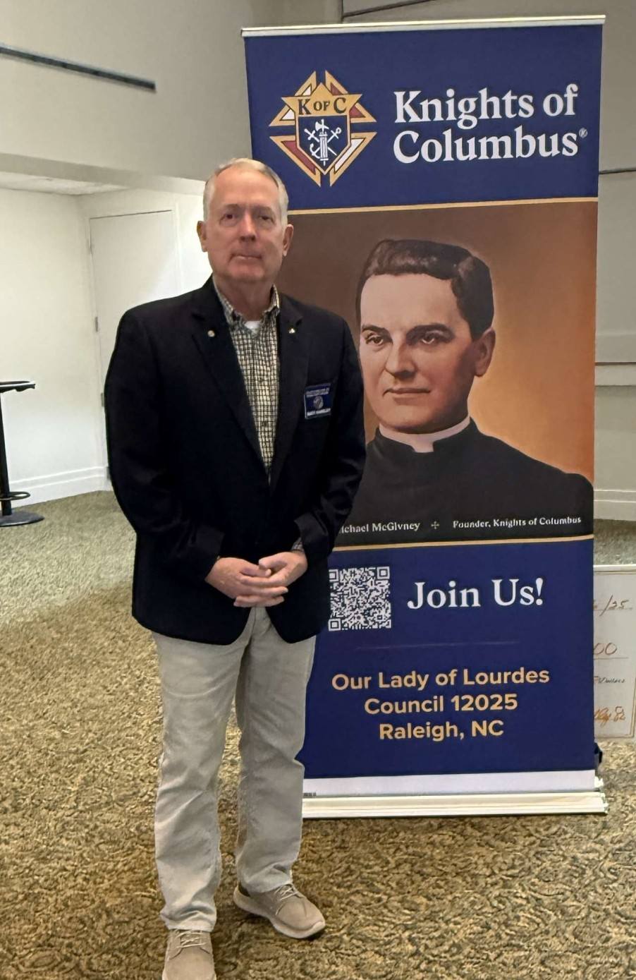 Introducing Sean, the 2025 winner of the John Rose Scholarship- created to honor the memory of John Rose, his commitment to the Knights of Columbus, his dedication to the Church, and his love for NC State University. The award was presented by John’s wife- Nancy. This scholarship recognizes a deserving student from Our Lady of Lourdes Parish , who is attending NCSU. Congratulations Sean!