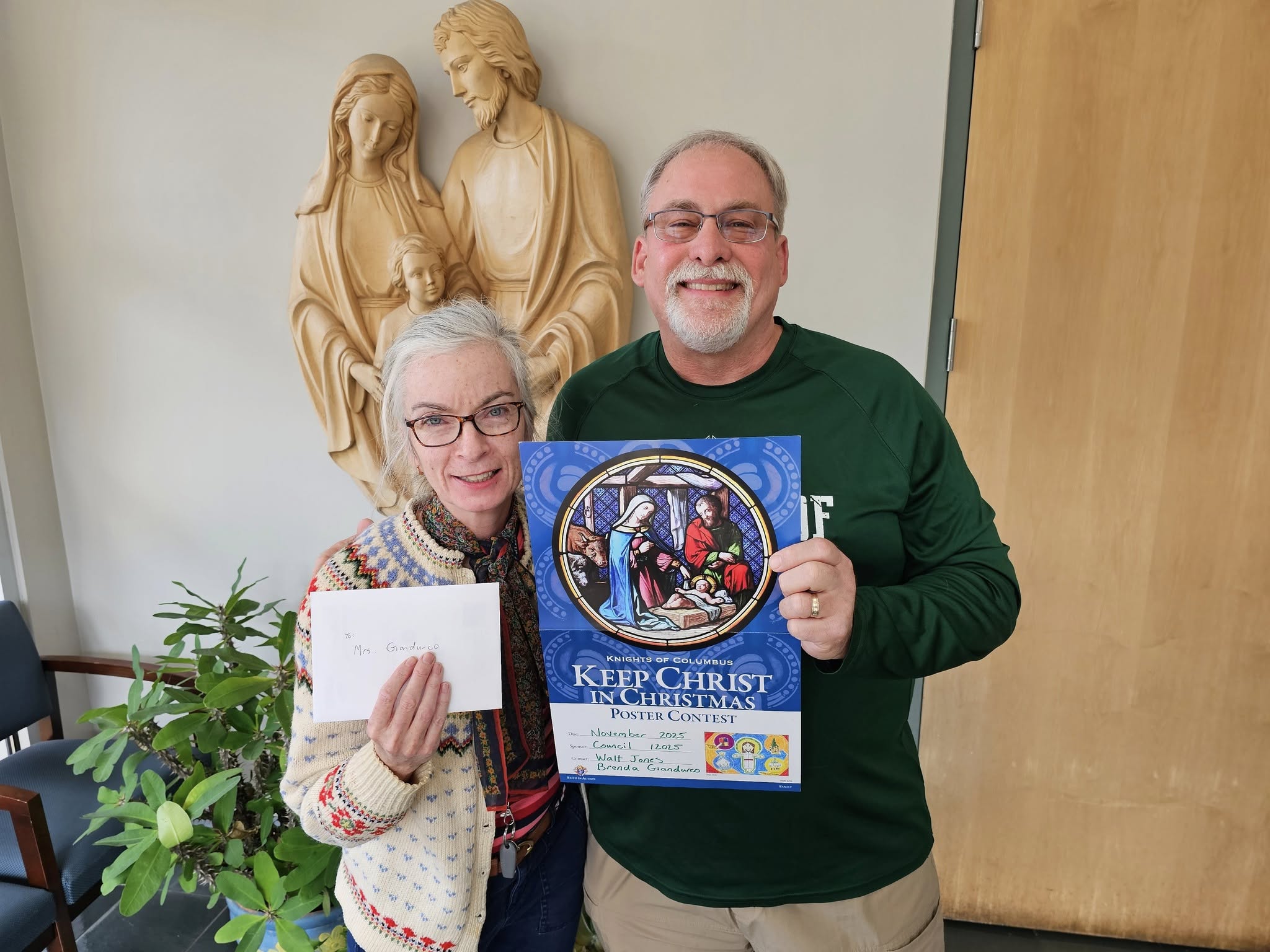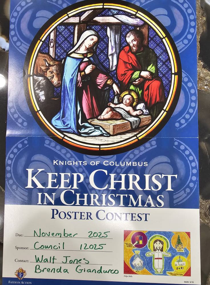 Congratulations to the winners of the K of C- Keep Christ in Christmas poster contest. A special thanks to OLLS 6th grade, Mrs. Giandurco- Art teacher extraordinaire and Principal Leblanc for their outstanding support! Finally thank you to all the Knights that helped judge them- Especially Deacon Brad who assisted with presentation of the awards. Have a wonderful CHRISTmas!