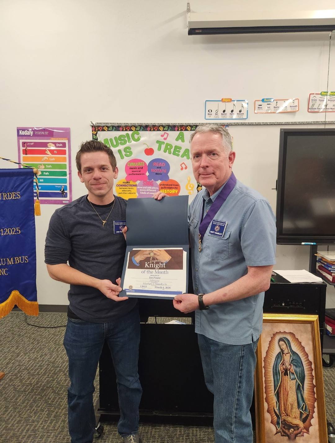 Congratulations to Brother Pat M. who was awarded Knight of the Month for December 2025. Pat is a 4th Degree Knight with 20 years of continuous service to our Council. He has served as a Family Director, worthy Warden and Grand Knight. He has contributed much to our Council over the years including buying name badges for MANY years, raising money for the Council by hosting the popular Auto Bell gift card sale, and participating in programs such as Birthchoice races, our Exemplification team, Knights’ 1st and 5th Sunday Rosary, pancake breakfasts, and fish fries to name a few. Thanks for your service to 12025- you are a big reason why the Council has thrived! God Bless you.